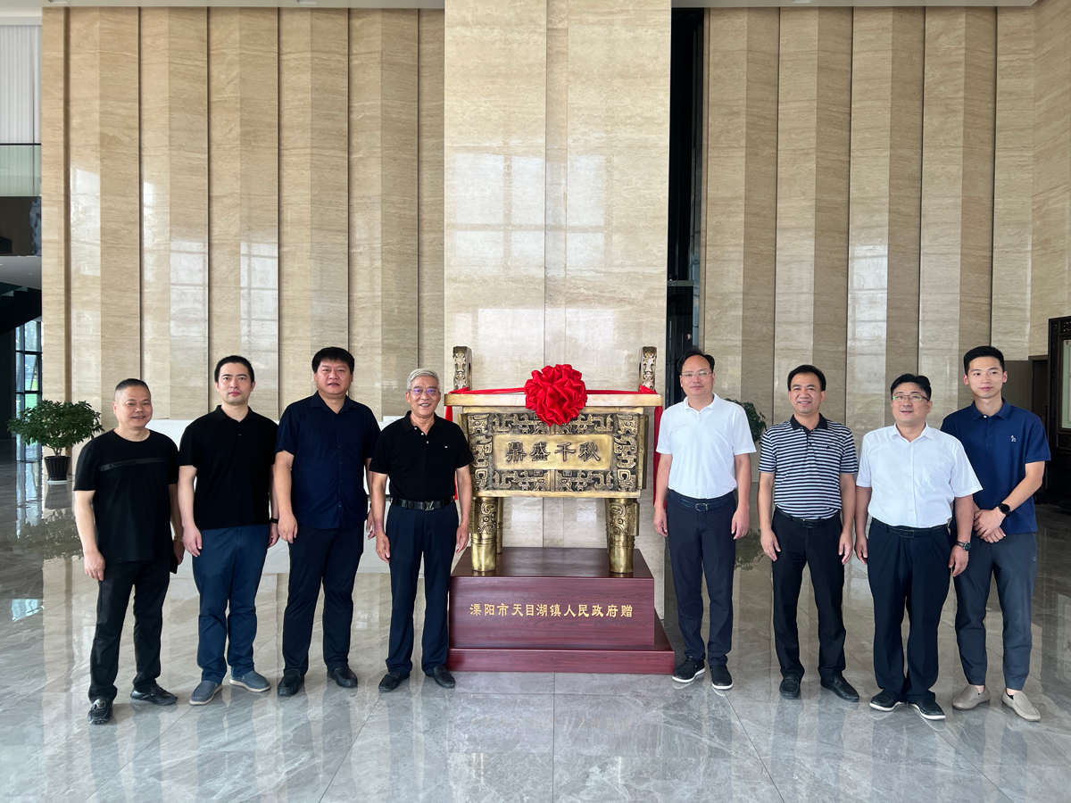 今天上午,天目湖镇党委书记、天目湖旅游度假区管委会主任周文光等领导一行,到我司进行走访调研。周书记对我司近段时间的工作,以及工作中遇到的问题进行了全面了解。同时代表镇政府向公司送来关心和慰问,赠送了寓意为“鼎盛千秋、龙腾四海”的宝鼎。