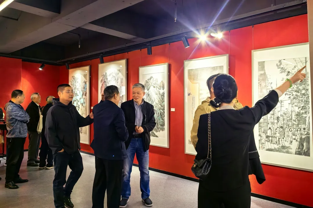 中共溧阳市委宣传部部长曹俊;国务院特殊津贴专家、山东大学讲席教授、华东师范大学紫江学者、终身教授阮荣春;江苏开放大学副校长、江苏政协常委张晓;东南大学艺术学院二级教授、东南大学中国书法研究院副院长汪小洋;溧阳市文学艺术界联合会主席沈佳宾;溧阳市文学艺术界联合会党组书记、副主席丁月辉;常州地区首家建筑工程施工总承包特级企业、时博董事长张龙海;时博总裁周瑜;江苏海菱机电设备有限公司总经理黄志荣;中国美术家协会会员,溧阳画家代表朱富平等领导和嘉宾出席了开幕式。溧阳籍国家级美协会员、省级美协会员、地市级美协会员50多人出席了开幕式。溧阳市美术家协会主席黄小红主持了活动。
